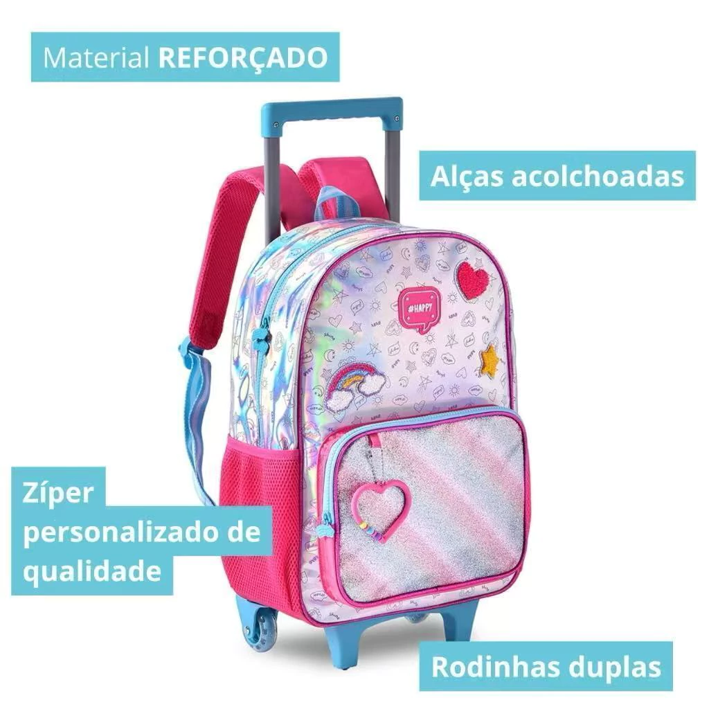 Adquira agora o Kit Mochila Escolar Infantil de Rodinha Menina com Lancheira Térmica e Estojo e proporcione à sua filha uma experiência escolar mais leve e organizada!