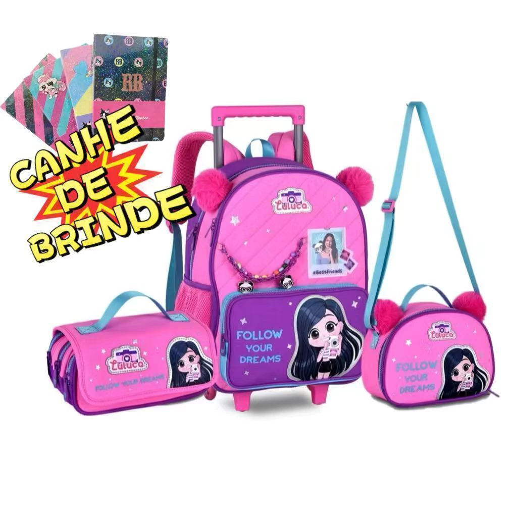 Adquira agora o seu Kit Mochila Rodinha Luluca Pandinha 2026 Rosa-Chiclete e proporcione à sua filha uma experiência única, onde elegância e funcionalidade caminham juntas em cada passo!