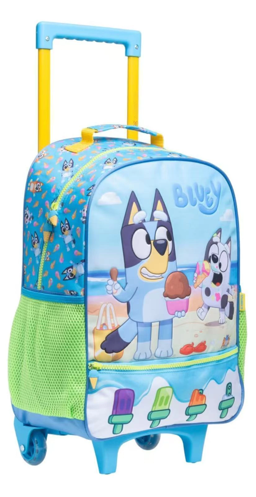 Leve a diversão para a escola com a Mochila de Rodinhas com Alça Costas 16" Bluey X Praia Escolar, perfeita para crianças que adoram conforto, organização e o charme do personagem Bluey! Esta mochila alia funcionalidade e um design encantador que vai conquistar a garotada.