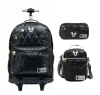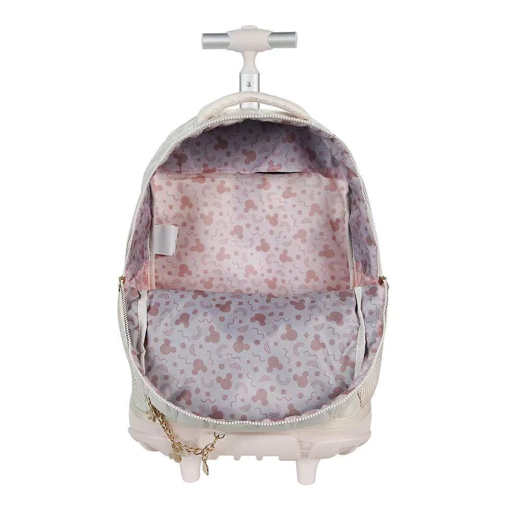 Projetada especialmente para jovens, esta mochila de rodinhas apresenta um design exclusivo com os personagens Mickey e Minnie, que encantam qualquer fã da Disney. Com tamanho ideal de 17 polegadas, ela é perfeita para carregar livros, cadernos e materiais escolares com facilidade.
